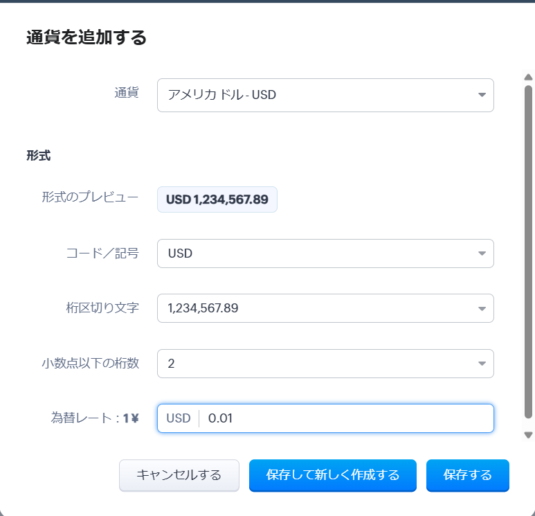 海外ビジネスを行っており、複数の通貨を追加したい場合は、複数通貨の登録が必要です。