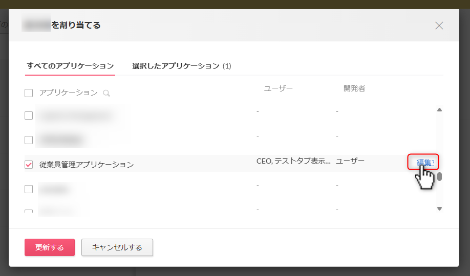3)権限を変更したいアプリの「編集する」をクリックします。