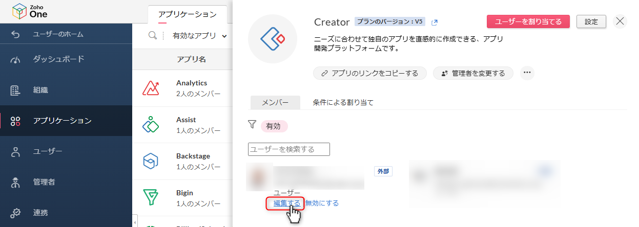 【Zoho Creator】アプリ別のカスタム権限をユーザーに付与する方法について教えてください(Zoho One版)