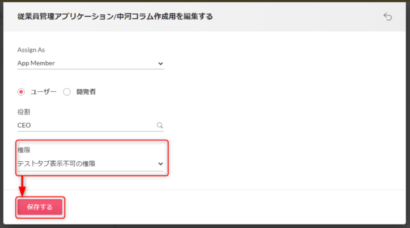 4)任意の権限に変更して「保存する」>「更新する」をクリックします。