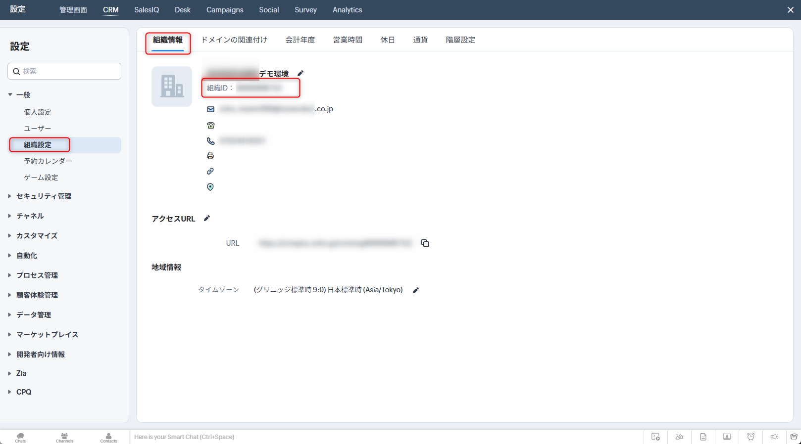 組織IDはZoho サポートへの問い合わせや他サービス連携時などに利用するため、