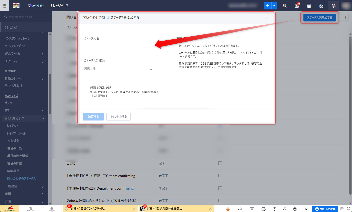 【Zoho Desk】「受付(open)」「問い合わせ完了(closed)」などのステータスを任意に追加したいのですが、可能でしょうか?