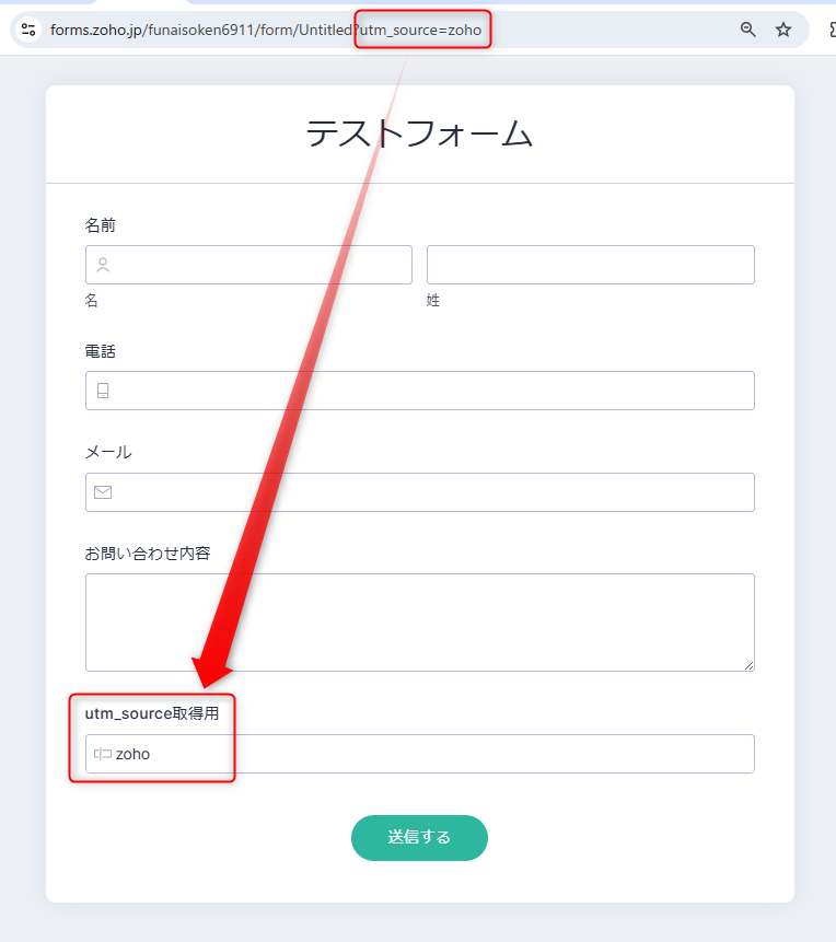 手順1で作成した入力項目に意図通り値が入るかどうかを確認してください。