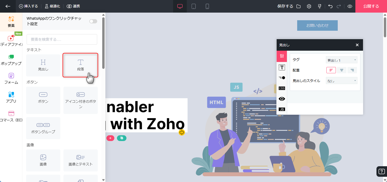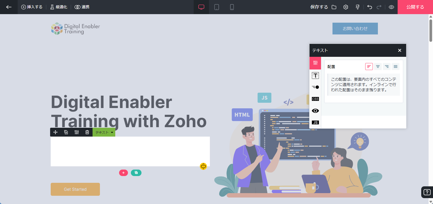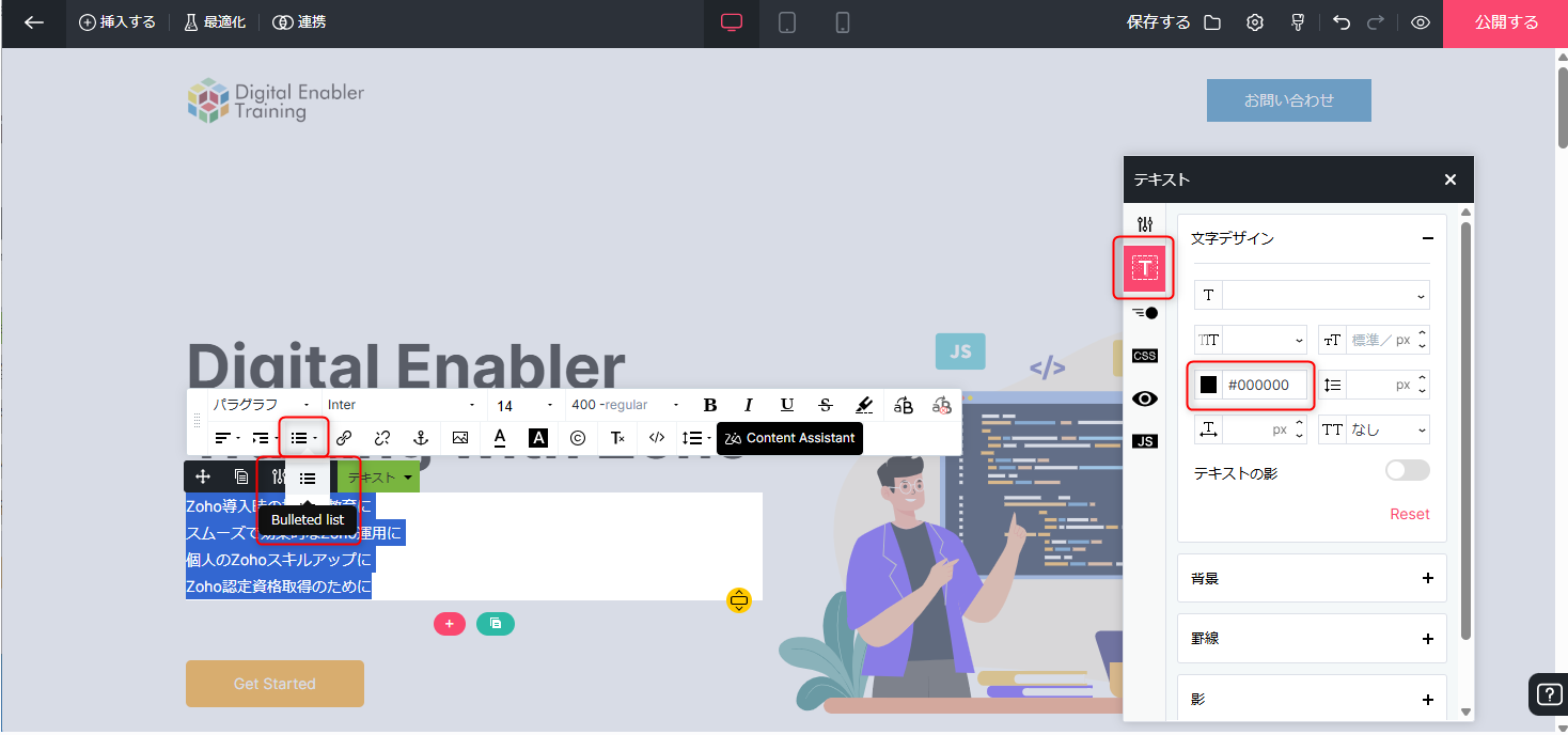 【Zoho LandingPage】テキストを箇条書き表示に変更する方法を教えてください