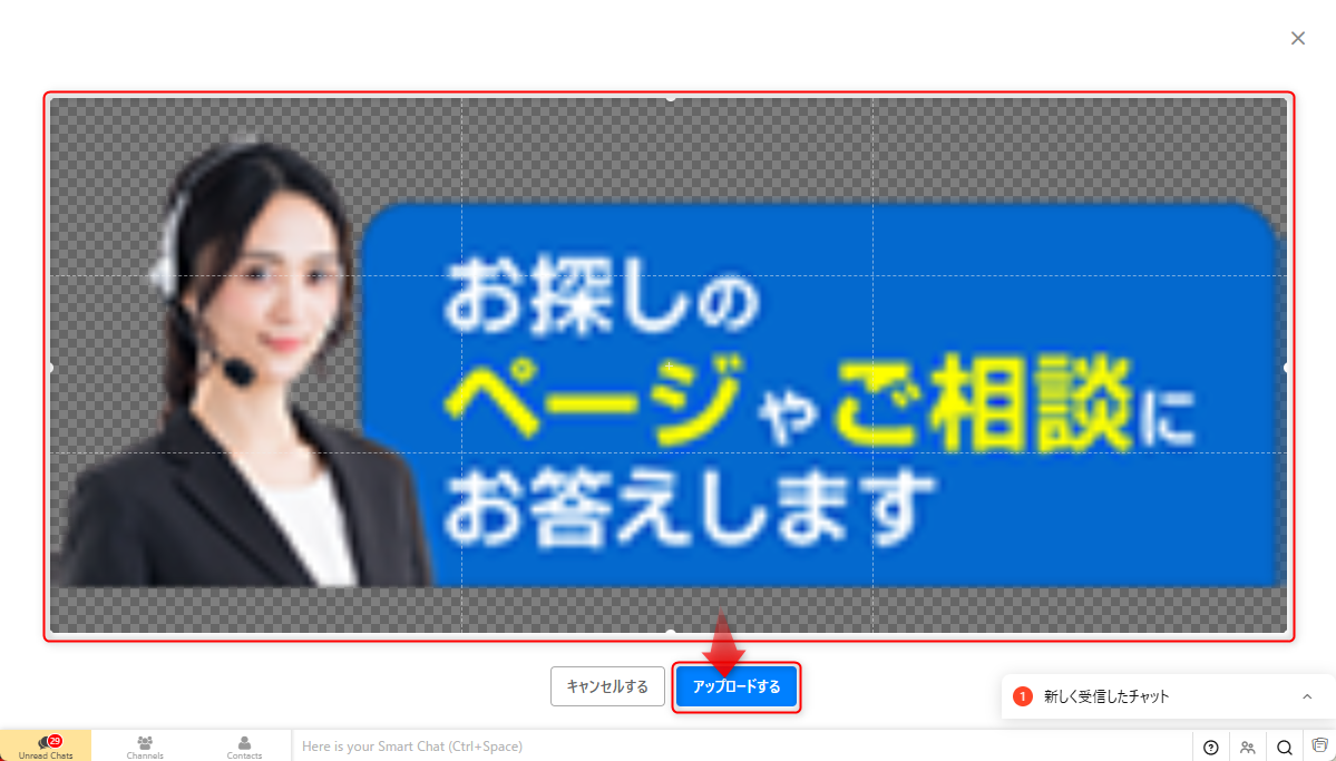 Zoho SalesIQのチャットウィジェット設定画面にて画像を再登録してご確認ください。
